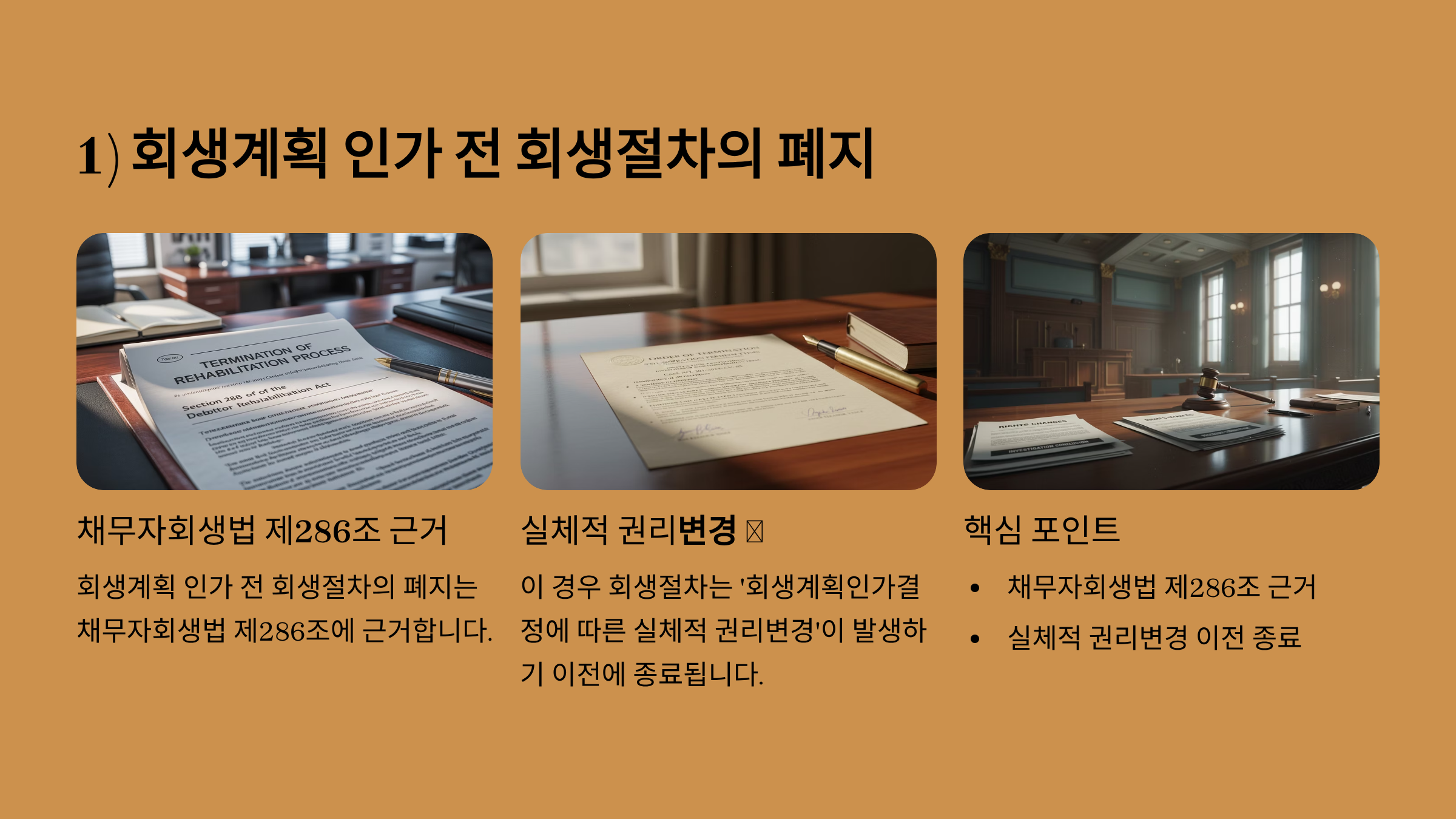 ①<회생계획 인가 전 회생절차의 폐지>는 채무자회생법 제286조에 근거하며, 회생절차는 '회생계획인가결정에 따른 실체적 권리변경'이 발생하기 이전에 종료된다.
