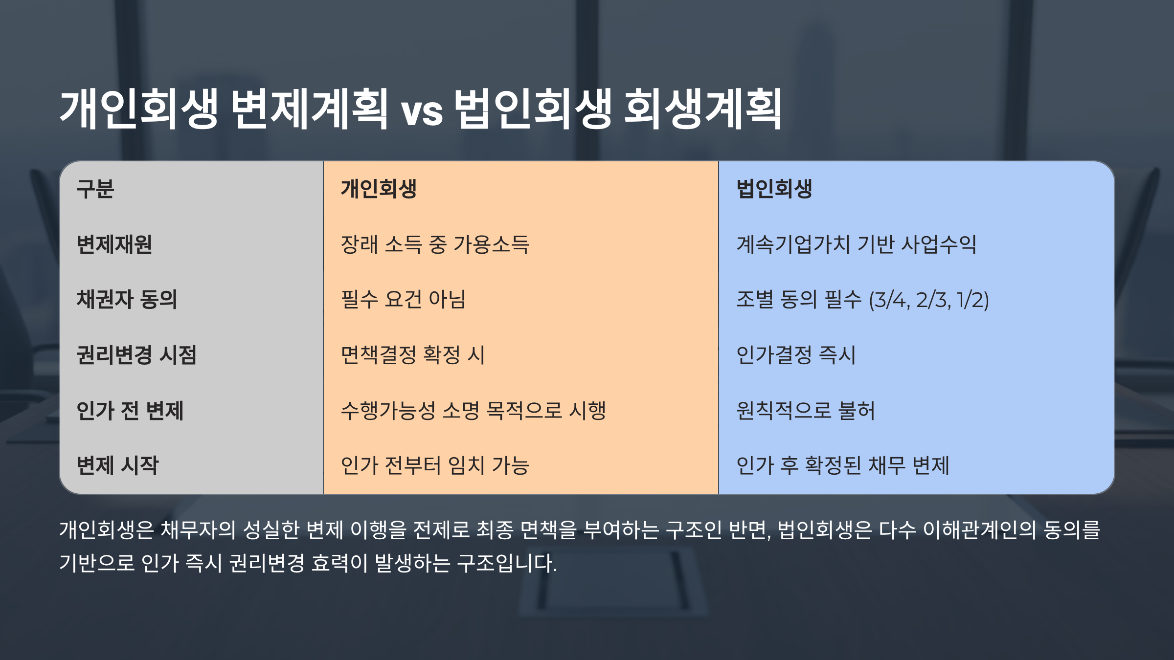 일반(법인)회생과 개인회생의 차이