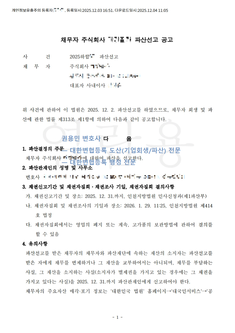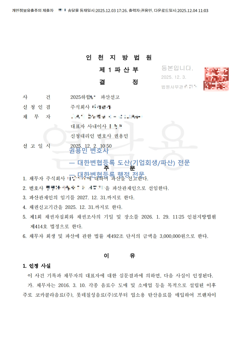 2025. 12. 03. 법인파산선고 - 인천지방법원