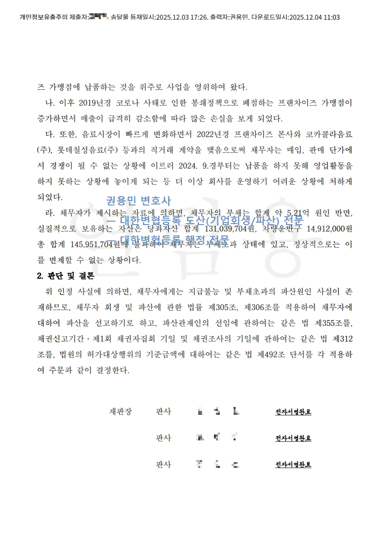 | 2025. 11. 26. '의류제조업체' 파산선고 사례 (1) | 2025.12.11 |