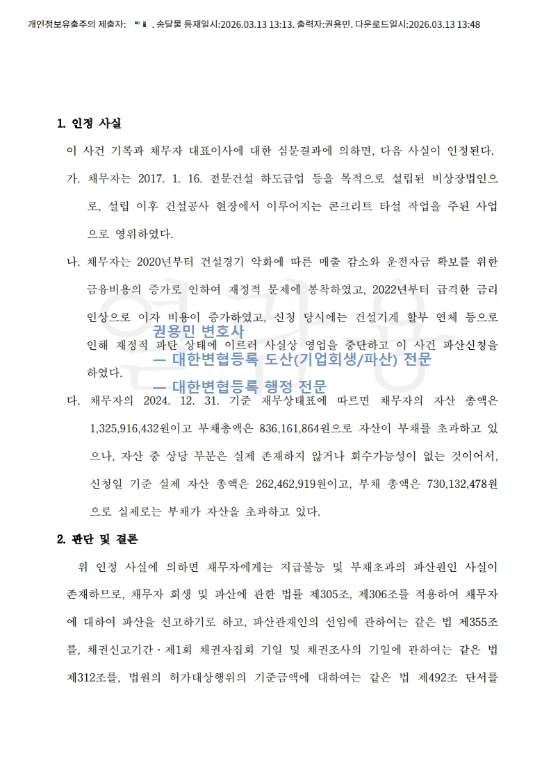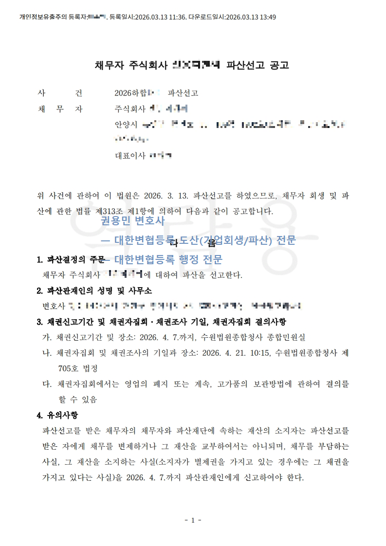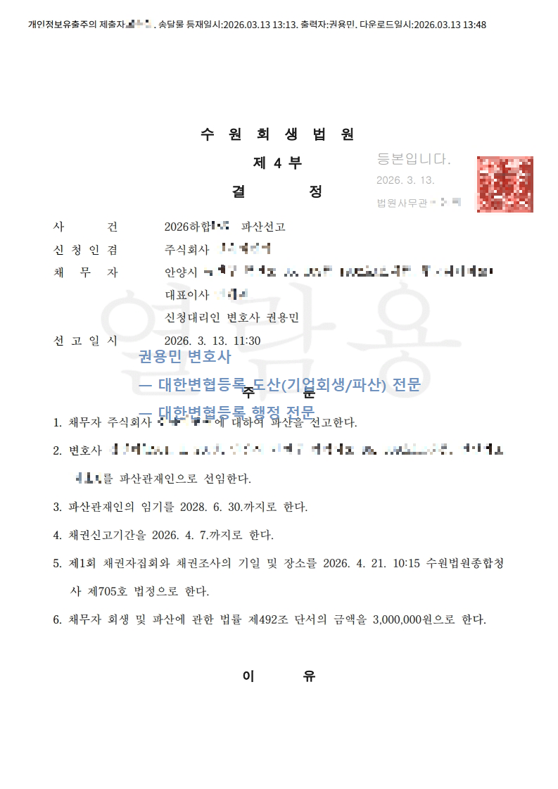 2026. 03. 13. 법인파산선고 - 수원회생법원