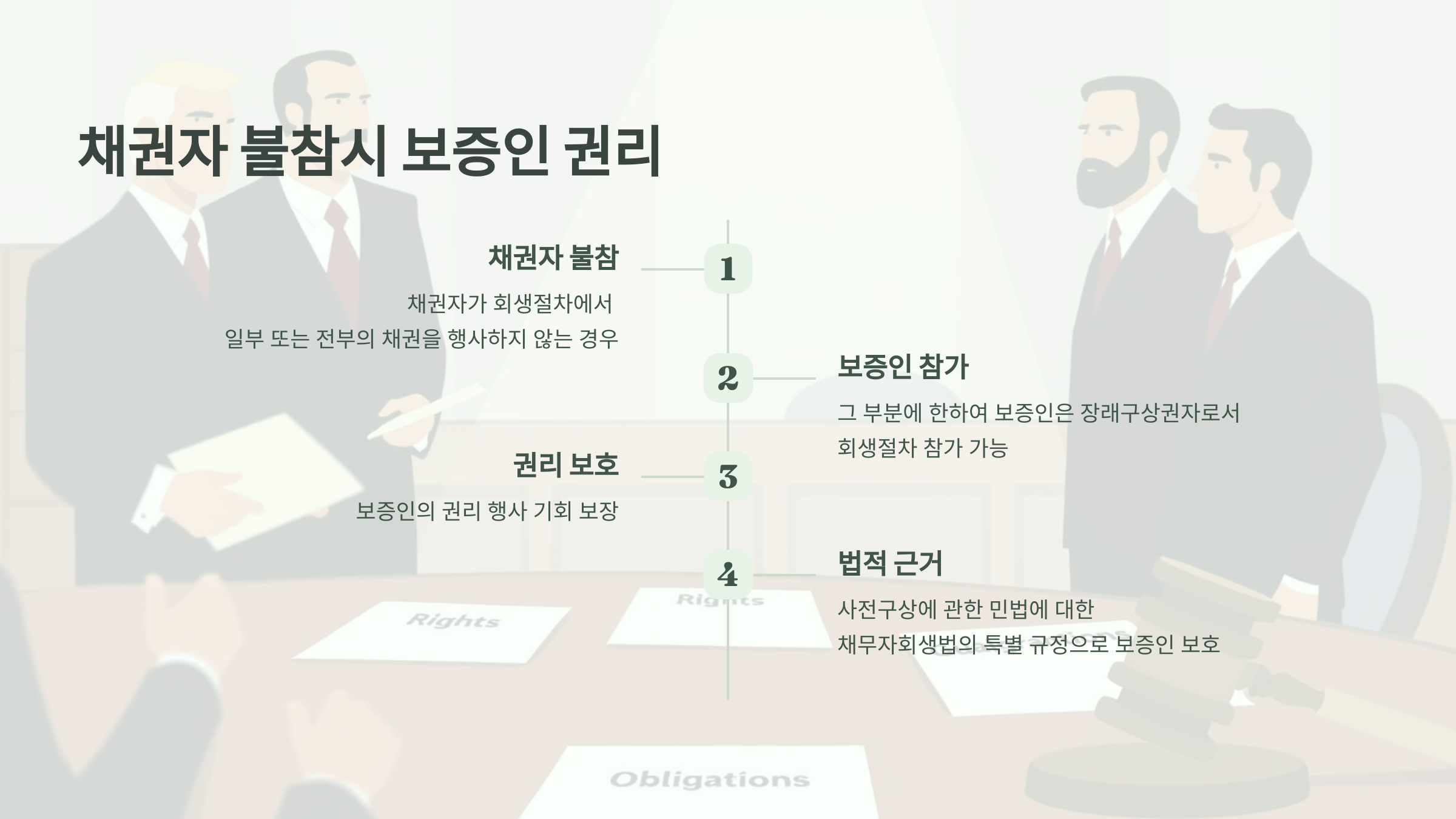 보증인이 제126조 제3항 단서에 따라 "장래구상권자로서 절차에 참가할 수 없다"는 의미는 채권자가 자신의 채권을 신고한 경우에 보증인은 장래구상권을 신고할 수 없고, 신고하여도 관리인의 이의 대상이 된다는 것이다. 당연히 관계인집회에서 의결권도 부여되지 아니한다. 이는 채권자의 권리행사와 보증인의 권리행사를 모두 인정하는 경우에는 이중의 권리행사가 인정되기 때문이다.